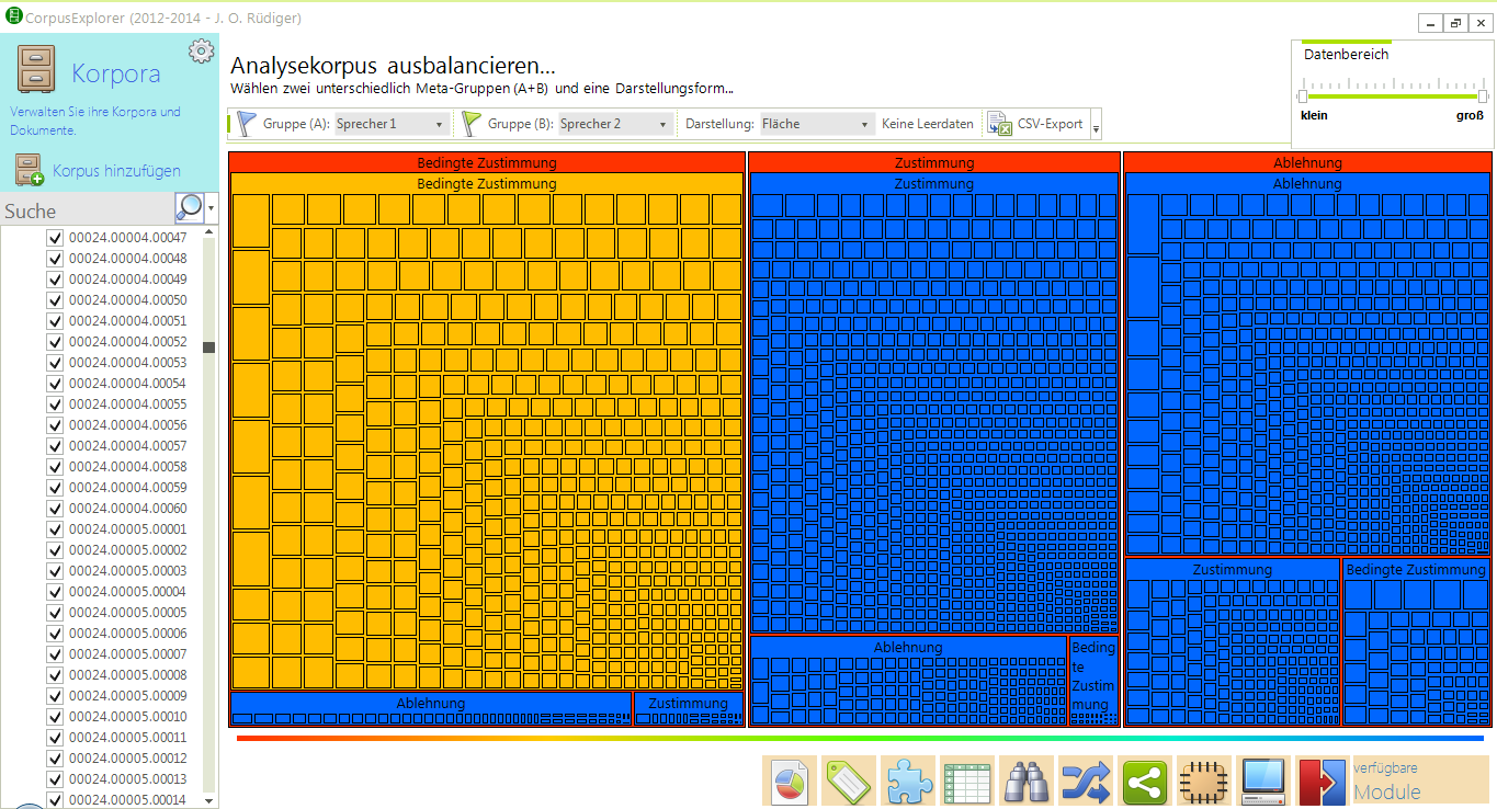 - Sprecher1-Wertung vs. Sprecher2-Wertung im Bezug auf das Gesamtkorpus